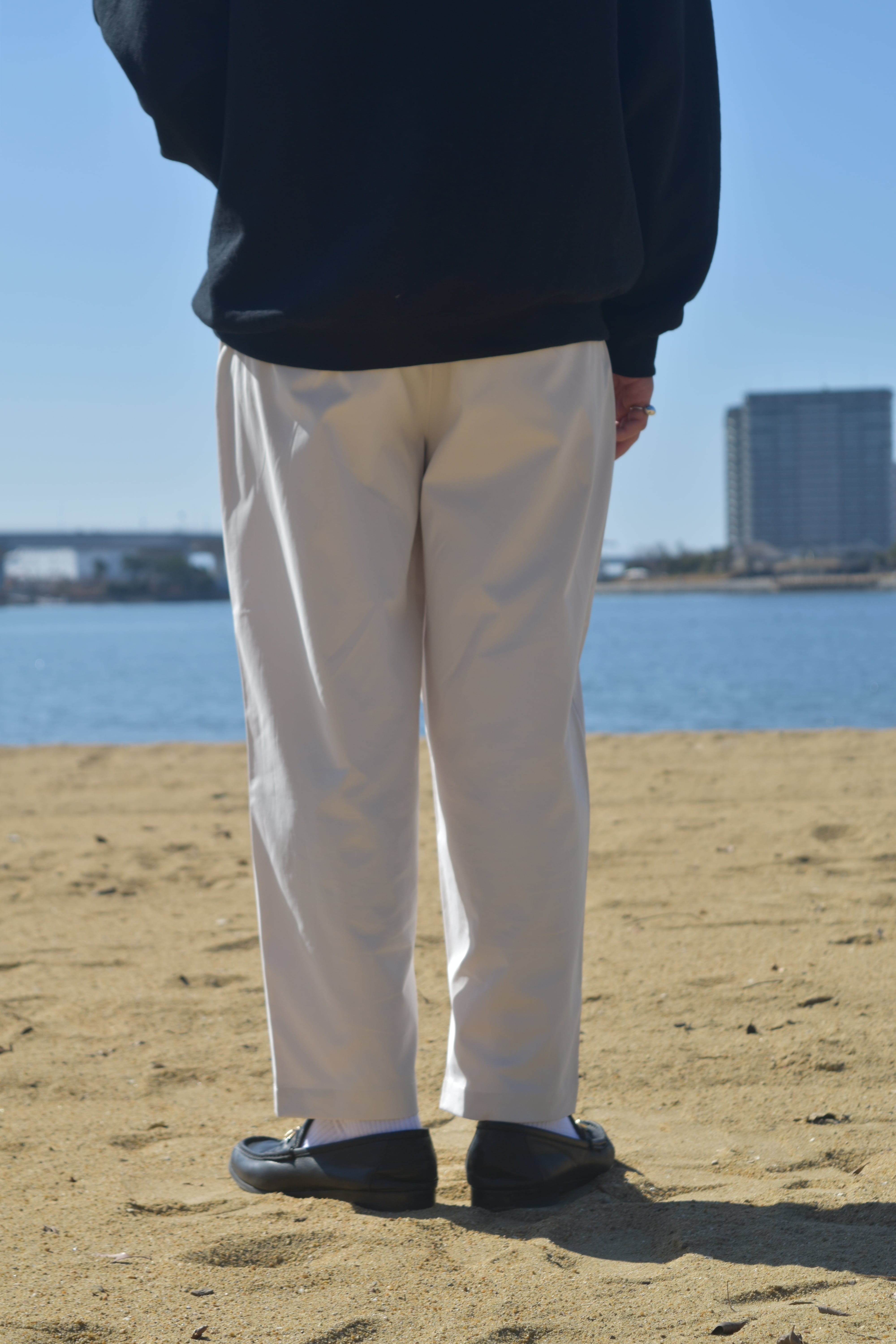 LoopのTAPERED PANTだと、絶妙なシルエットと色味で