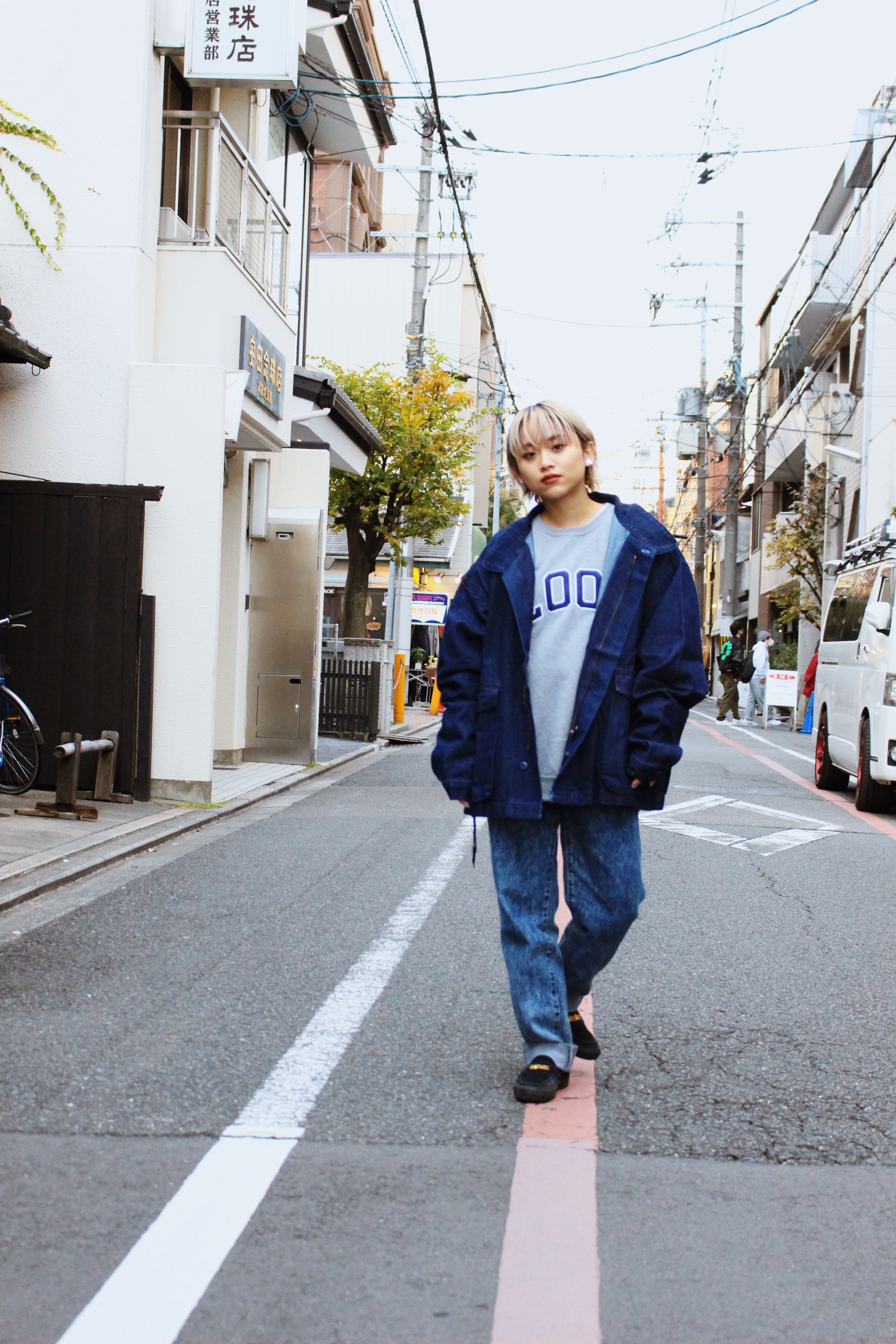ゆったりシルエットでこれからの季節、パーカーの上に羽織るのも良し、