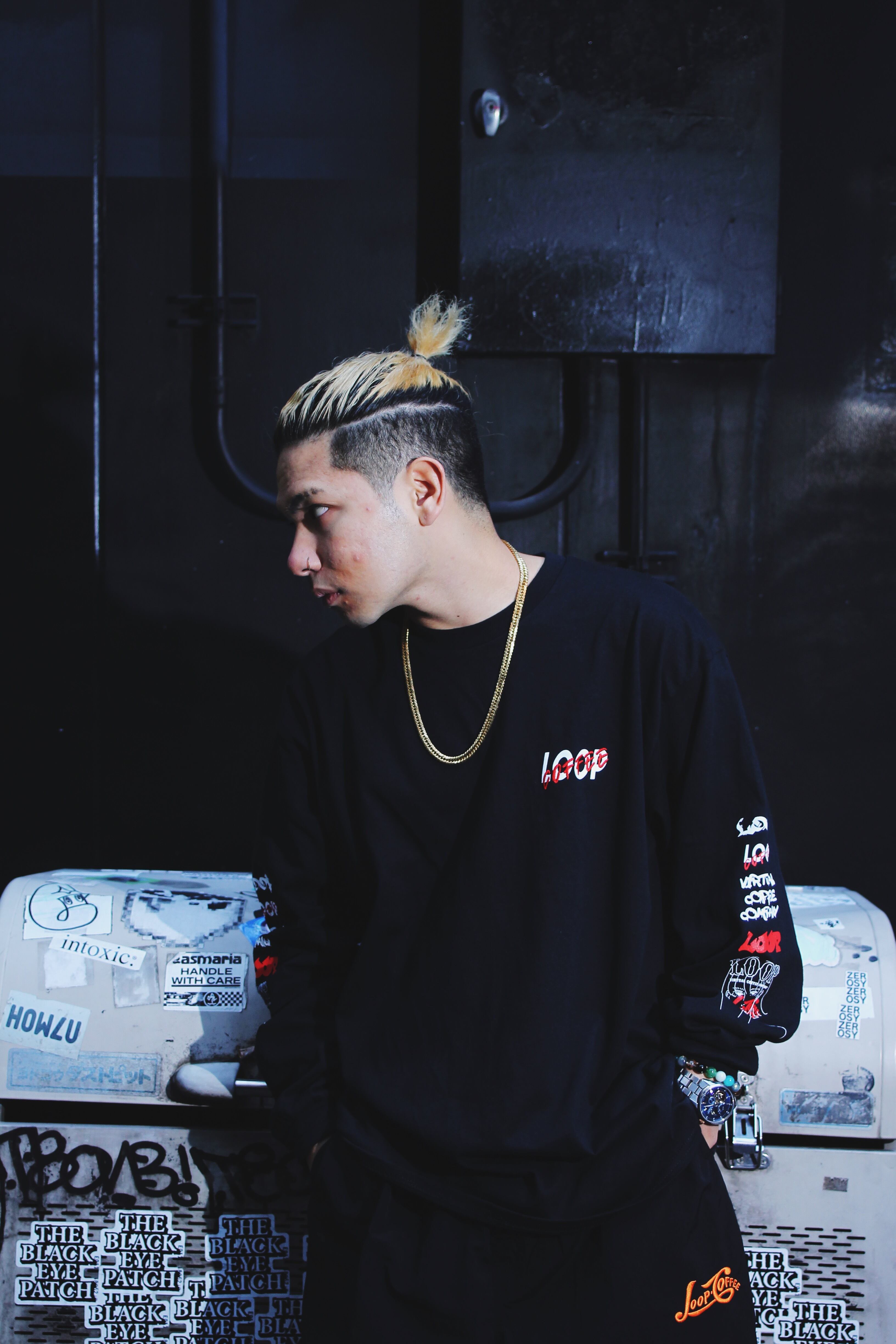 プリントの上に刺繍を施しており、袖には過去のLoopのグラフィックや